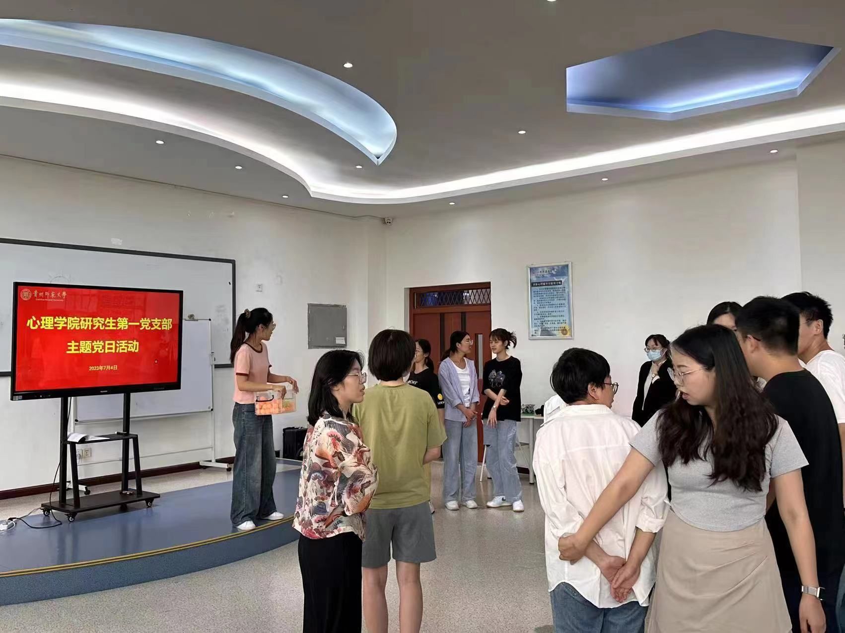 接着,支部党员张珊珊、陈航组织大家开展了以“压力管理”为主题的团体辅导活动,包括“抓逃手指”、“解开千千结”、“压力流星雨”、“纸飞机”等。团辅活动结束后,支部联合2021级研究生第二团支部以及党支部的积极分子共同开展“定位躲猫猫”活动。