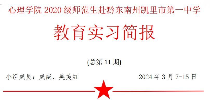 教育实习是师范生的一门重要课程,也是我们从员工到老师角色转换的一个非常重要的环节。为提高师范生教学技能、育人能力以及锻炼课堂技能。满怀着期待与愉悦心情,小组成员2人于3月6日前往凯里市第一中学开启实习生活。