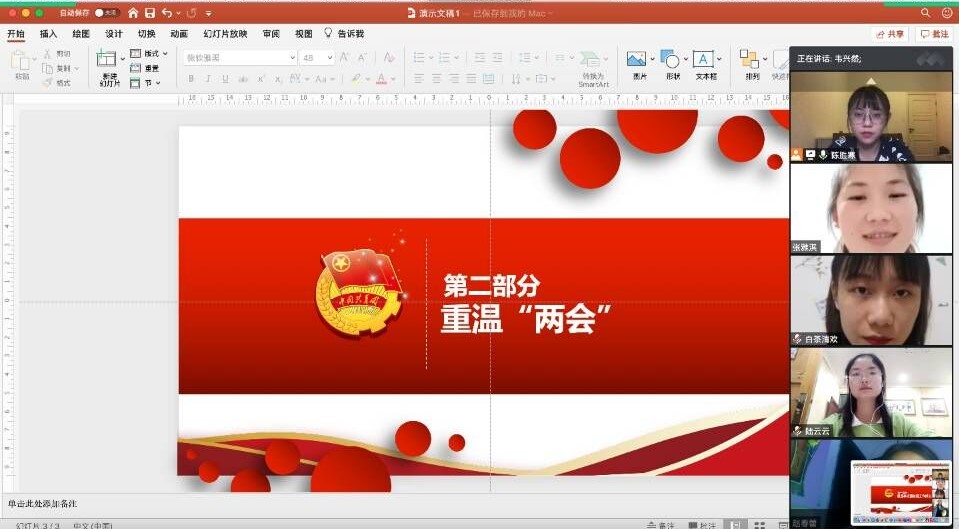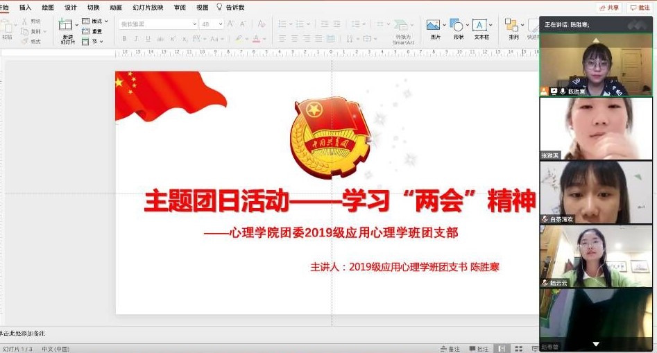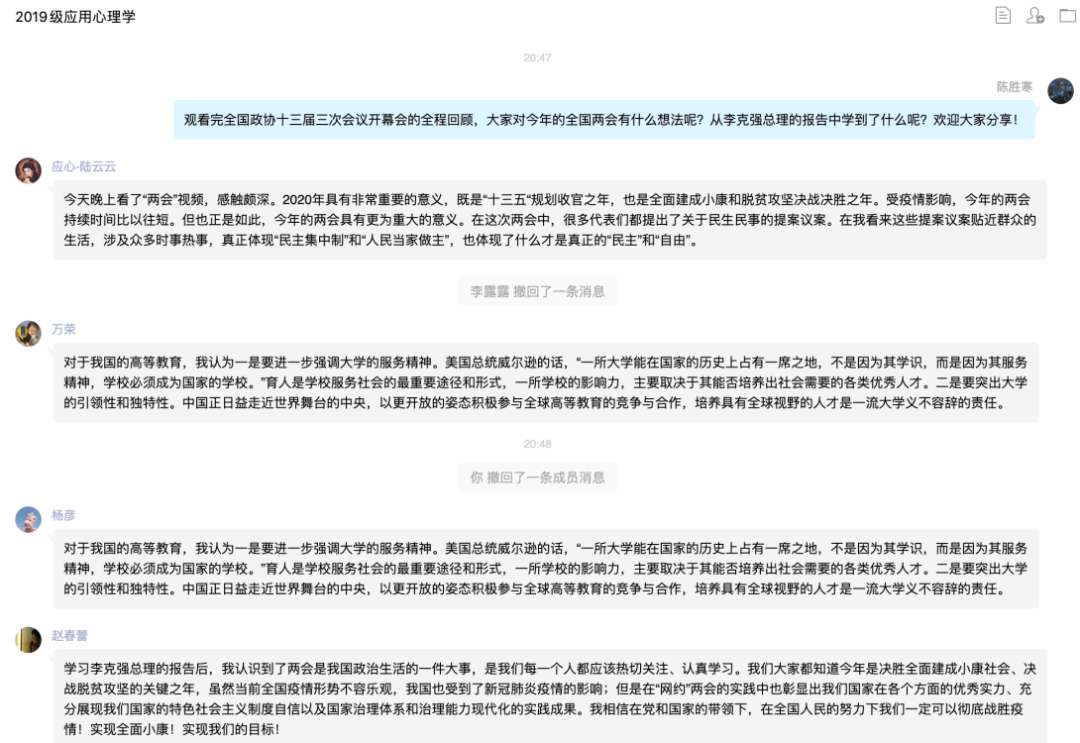 mk体育团委于2020年6月5日-8日组织开展了“学习两会精神”主题团日活动,全院4个本科生团支部、2个研究生团支部参与。各支部经过前期充分准备,以团支书领学、共同观看两会视频、全体团员热议等方式展开,在团日活动中同学们积极探讨,分享了自己的学习心得。