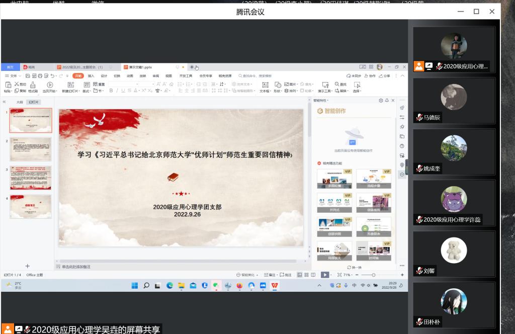为深入学习贯彻习近平总书记给北京师范大学“优师计划”师范生重要回信精神,喜迎党的二十大召开,9月26日—30日,mk体育团委组织各团支部、全体团员青年,结合自身实际,通过线上集中学习、分散自学等形式对习近平总书记的回信进行了学习探讨,各支部成员踊跃发表各自学习的体会和心得,纷纷表示将不负习近平总书记的嘱托,不断砥砺品格,增长传道授业解惑本领,努力成为党和人民满意的“四有”好老师,为培养德智体美劳全面发展的社会主义建设者和接班人贡献力量。