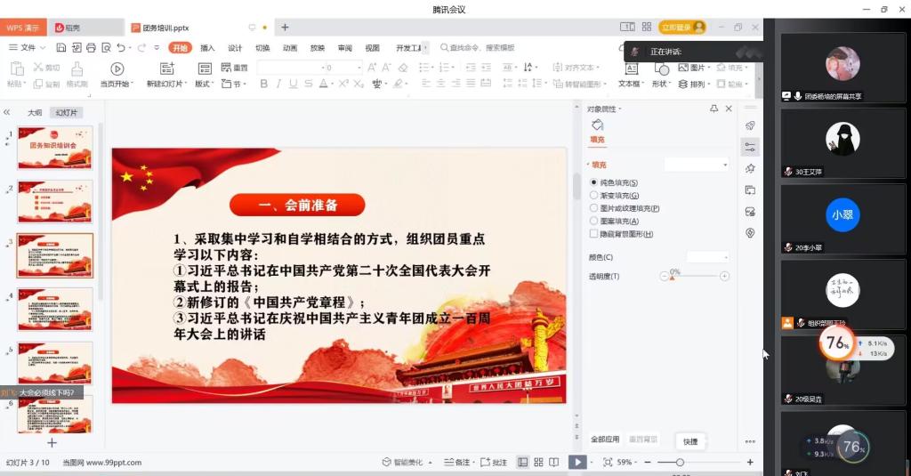 2022年11月29日晚,mk体育团委于腾讯会议组织召开2022年团务知识培训会。本次培训由院团委副书记杨培担任主讲,院团委组织部全体成员、各团支部委员共20余人参会。